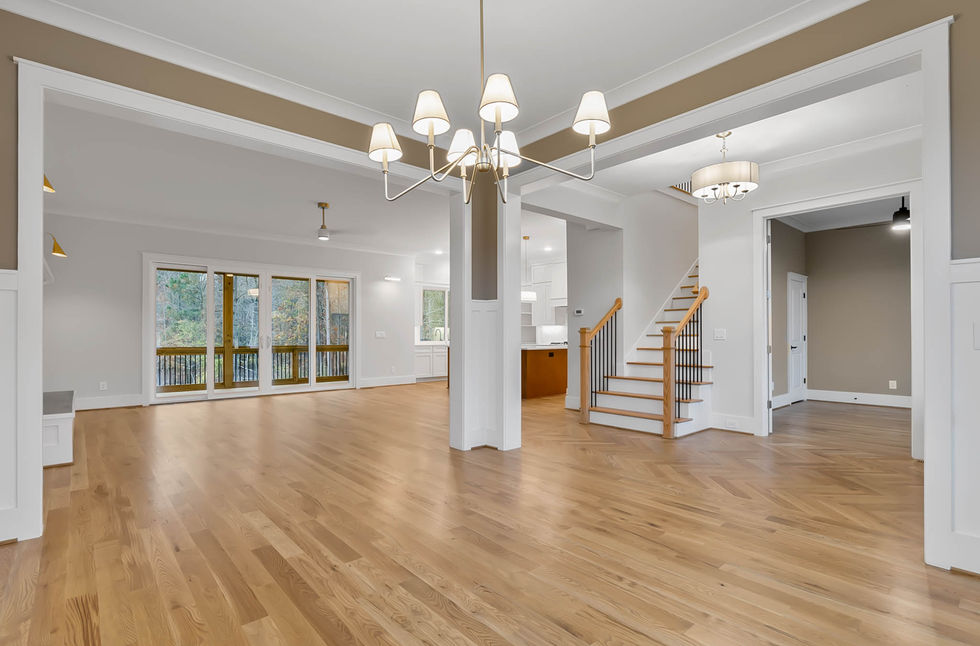 This open and sunlit 4-bedroom, 3.5-bath home offers timeless elegance and modern luxury, complete with a welcoming front porch and site-finished hardwood floors throughout the first floor.